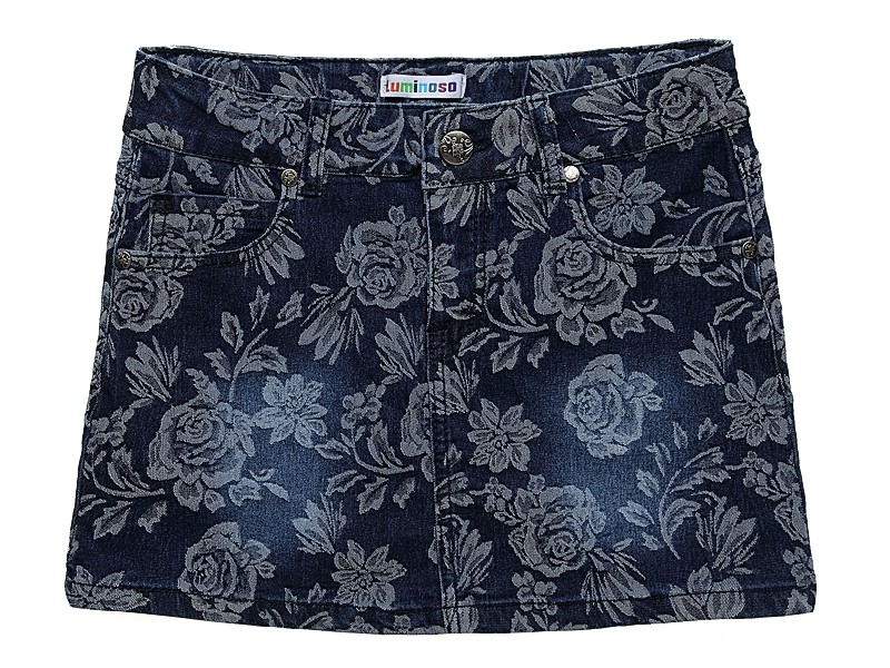 Красивая джинсовая юбка жаккардовая с цветочным орнаментом. Юбка декорирована красивыми болтами и клепками с цветочным узором. Внутри пояса эластичная регулируемая резинка.