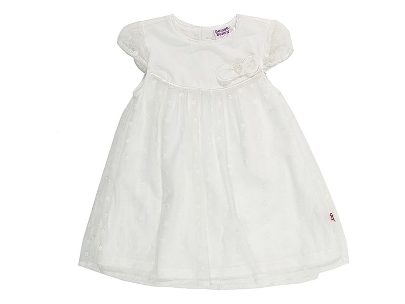 Нежное праздничное платье. Застежка - пуговицы-"жемчужинки" на спинке. Рукава-фонарики. Декорировано красивым бантом на кокетке.