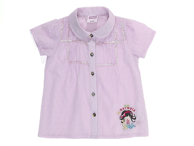 Блузка с коротким рукавом, декорирована мелкими складками. Украшена пайетками, вышивкой и стразами.