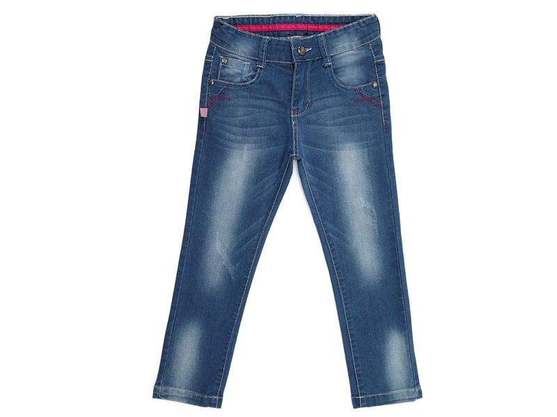 Джинсы классического покроя. Декорированы разноцветными прострочками и вышивкой на карманах.