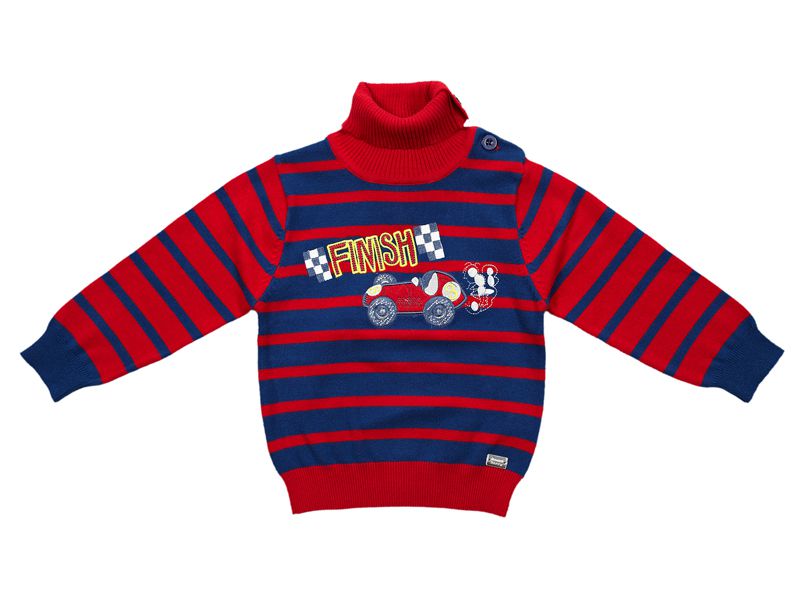 Вязаная водолазка для мальчика из 100% хлопка. Вязанные манжеты по рукавам и низу изделия. Украшен аппликацией и вышивкой.