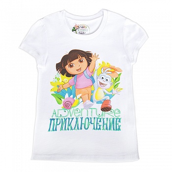 Футболка для девочки, выполненная из хлопка с эластаном - необходимая вещь в летнем гардеробе ребенка. Конструкция рукава футболки - "фонарик" делает модель женственной и романтичной. Яркий выразительный принт в стиле "Даша путешественница" - яркое эффектное украшение изделия. В оформлении принта использованы мелкие стразы и блестящее напыление.