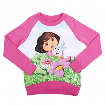 Толстовка из футера - модный, удобный, практичный элемент гардероба. Она прекрасно дополнит любой комплект в спортивном стиле, придав ему уют и комфорт. Модель имееет актуальную завышенную линию переда. Толстовка оформлена ярким крупным занимательным принтом в стиле "Даша путешественница", который не оставит равнодушными любознательных поклонников героев мультфильма.