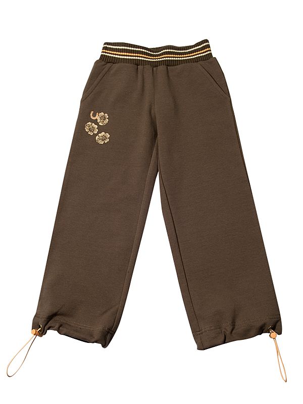 Брюки из мягкого трикотажа, декорированы вышивкой, ширина штанины регулируется стопором.