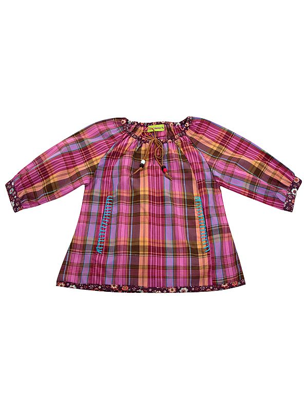 Блузка из хлопчатобумажной ткани в клетку,с оборкой и контрастной отстрочкой